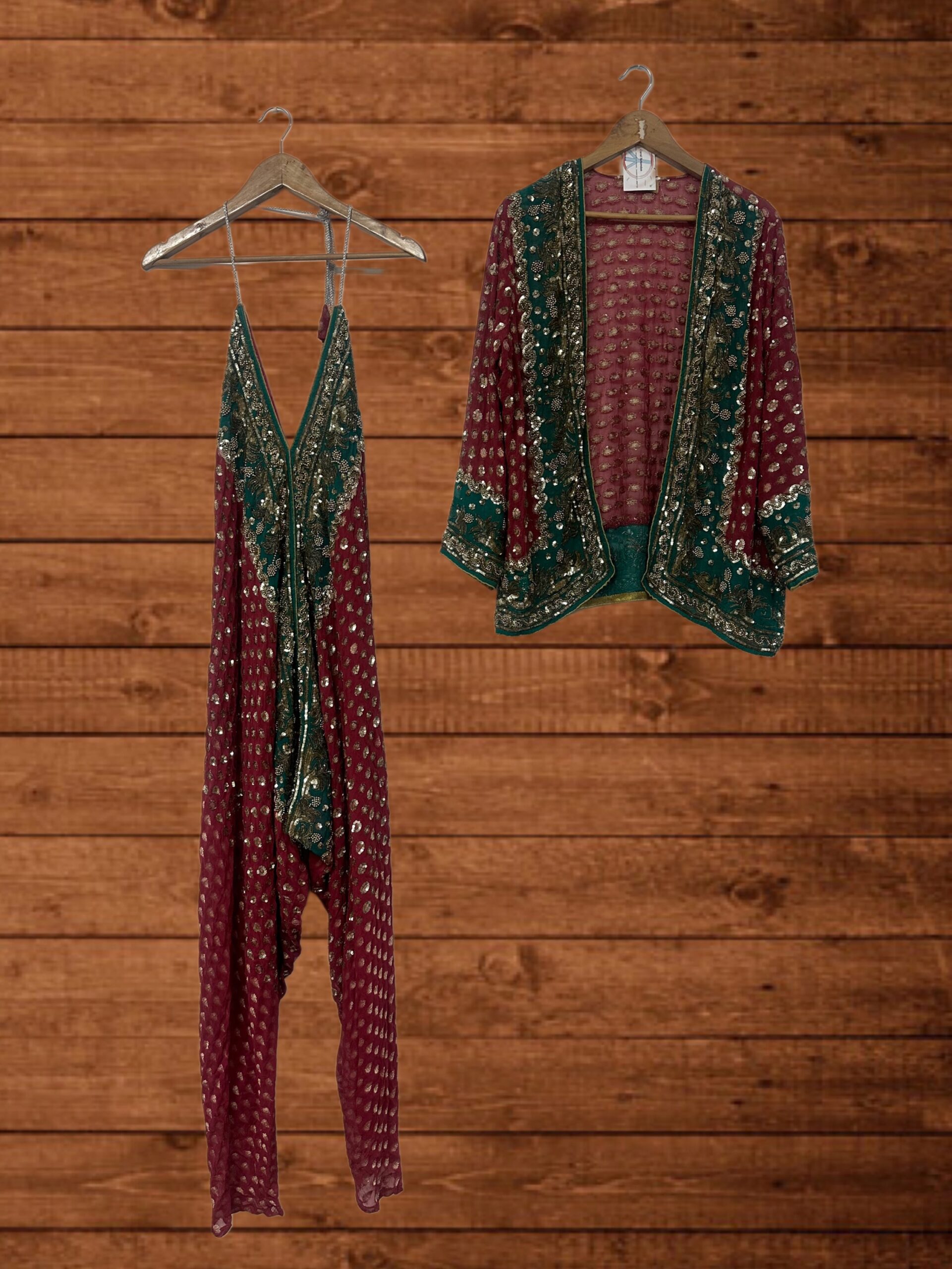 Maravilla de mono con escote en V y espalda en V. Cogido al cuello. Lleva forro.
