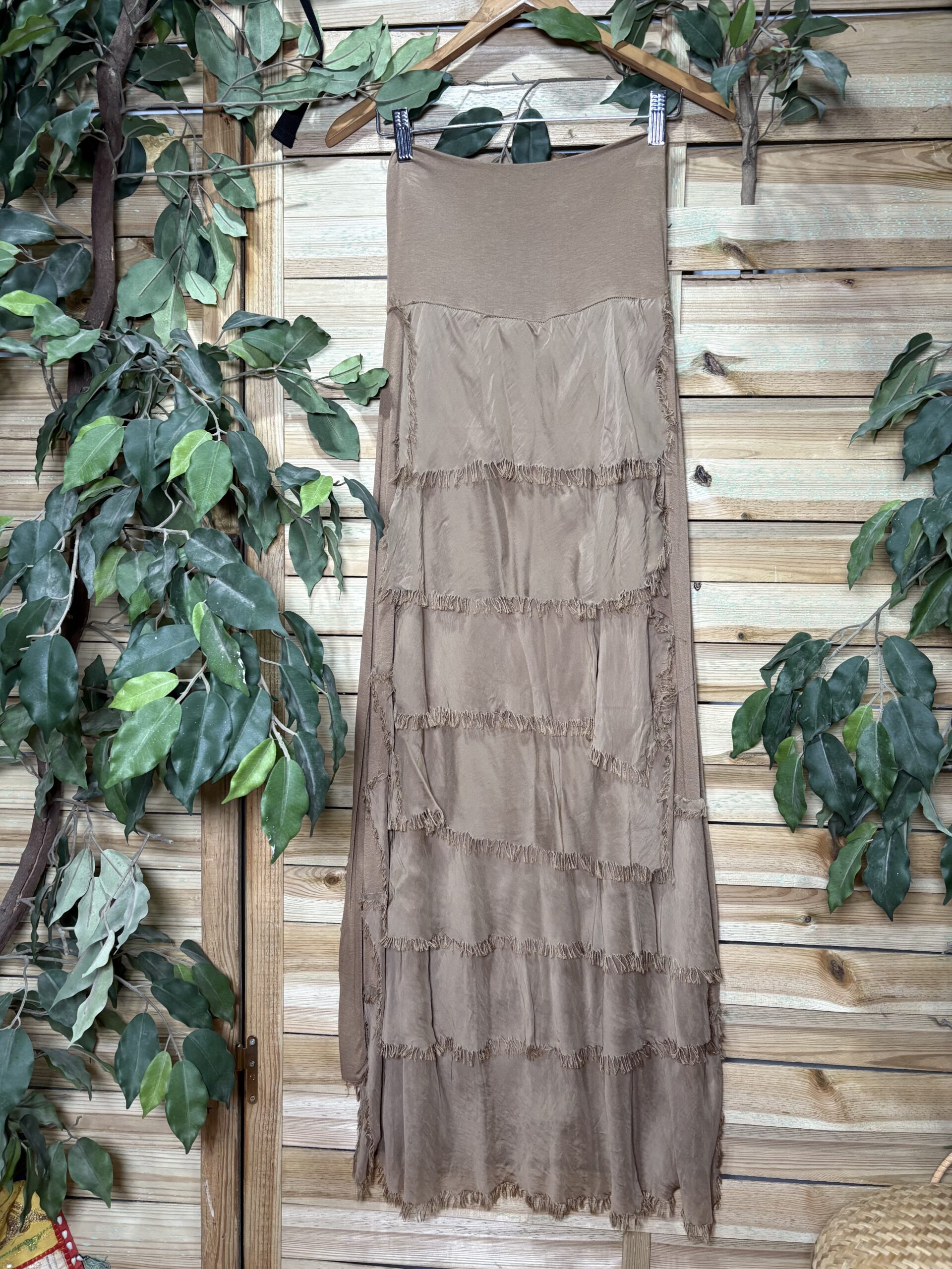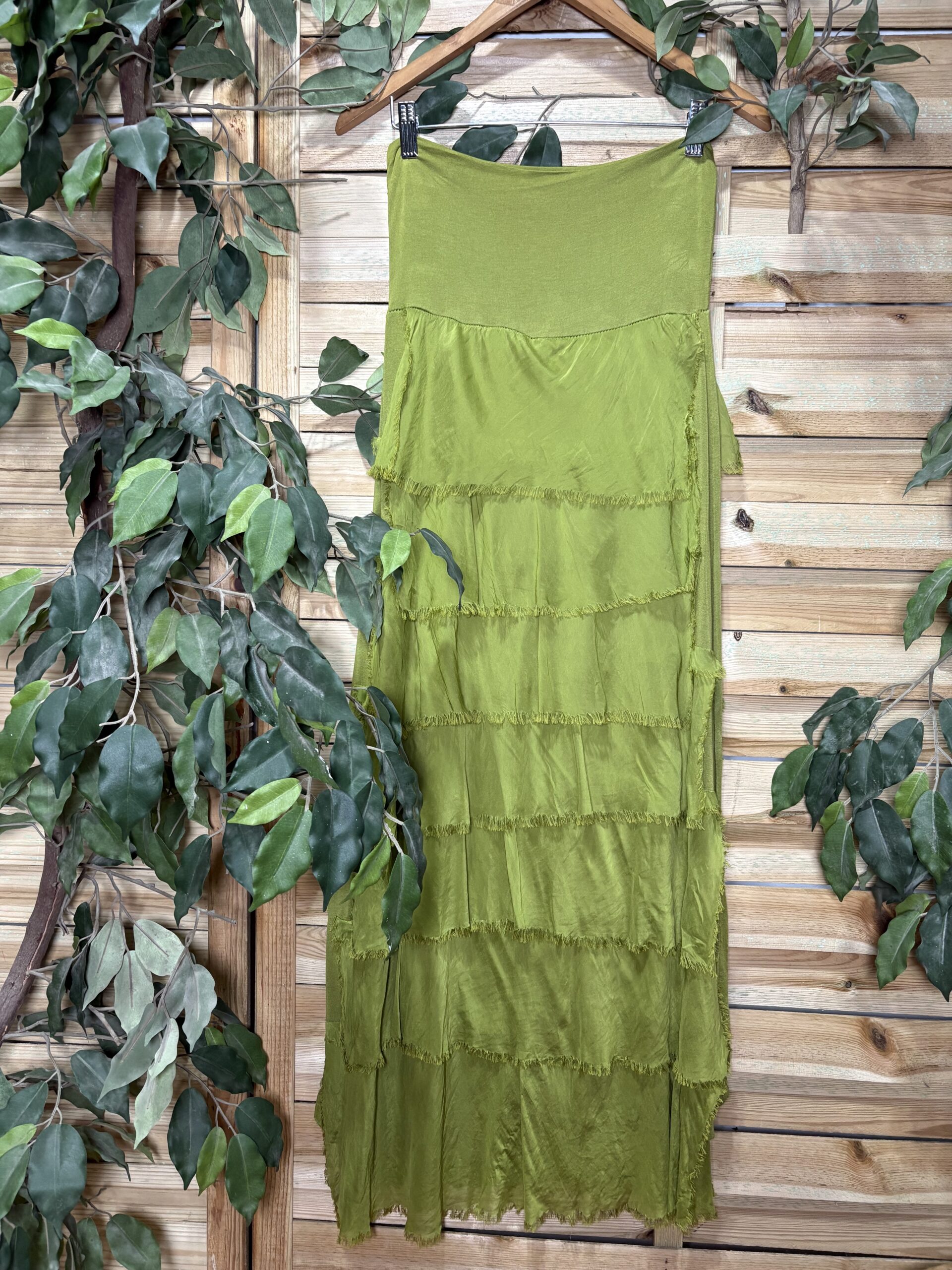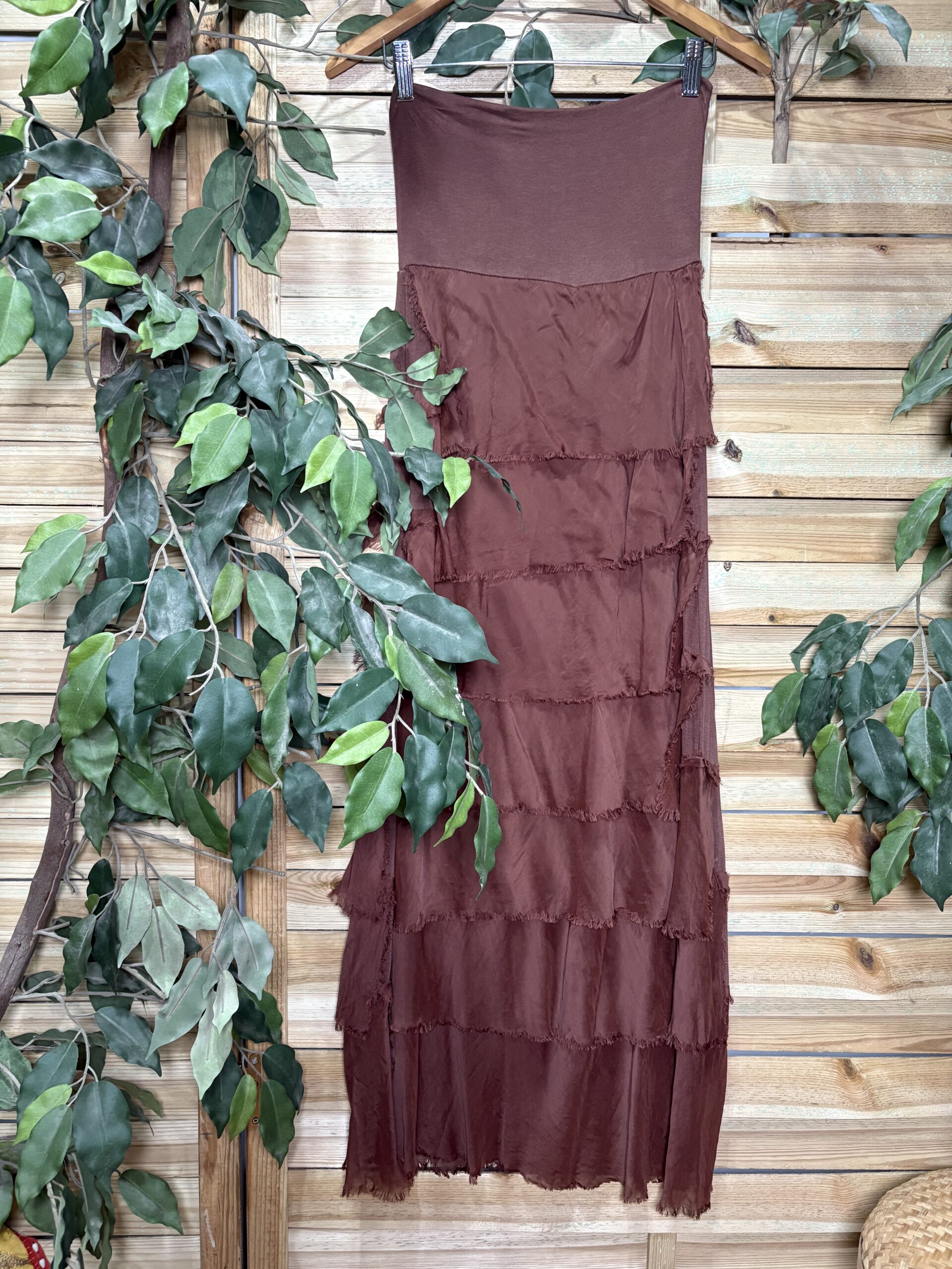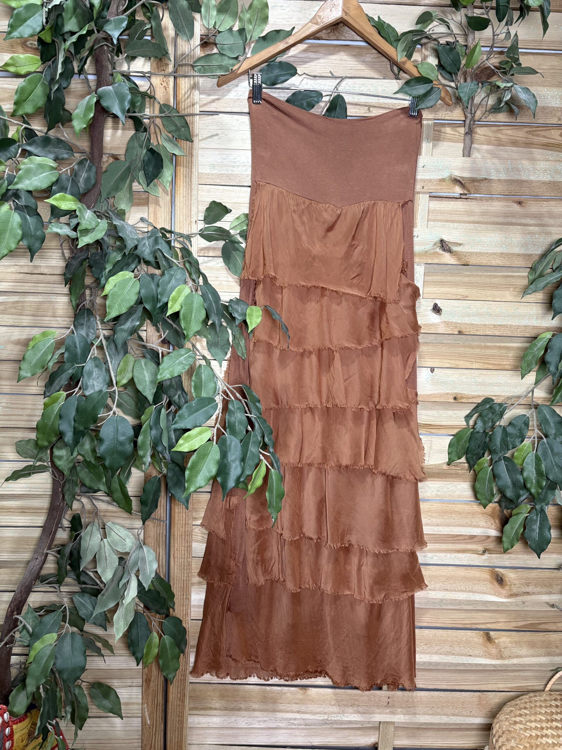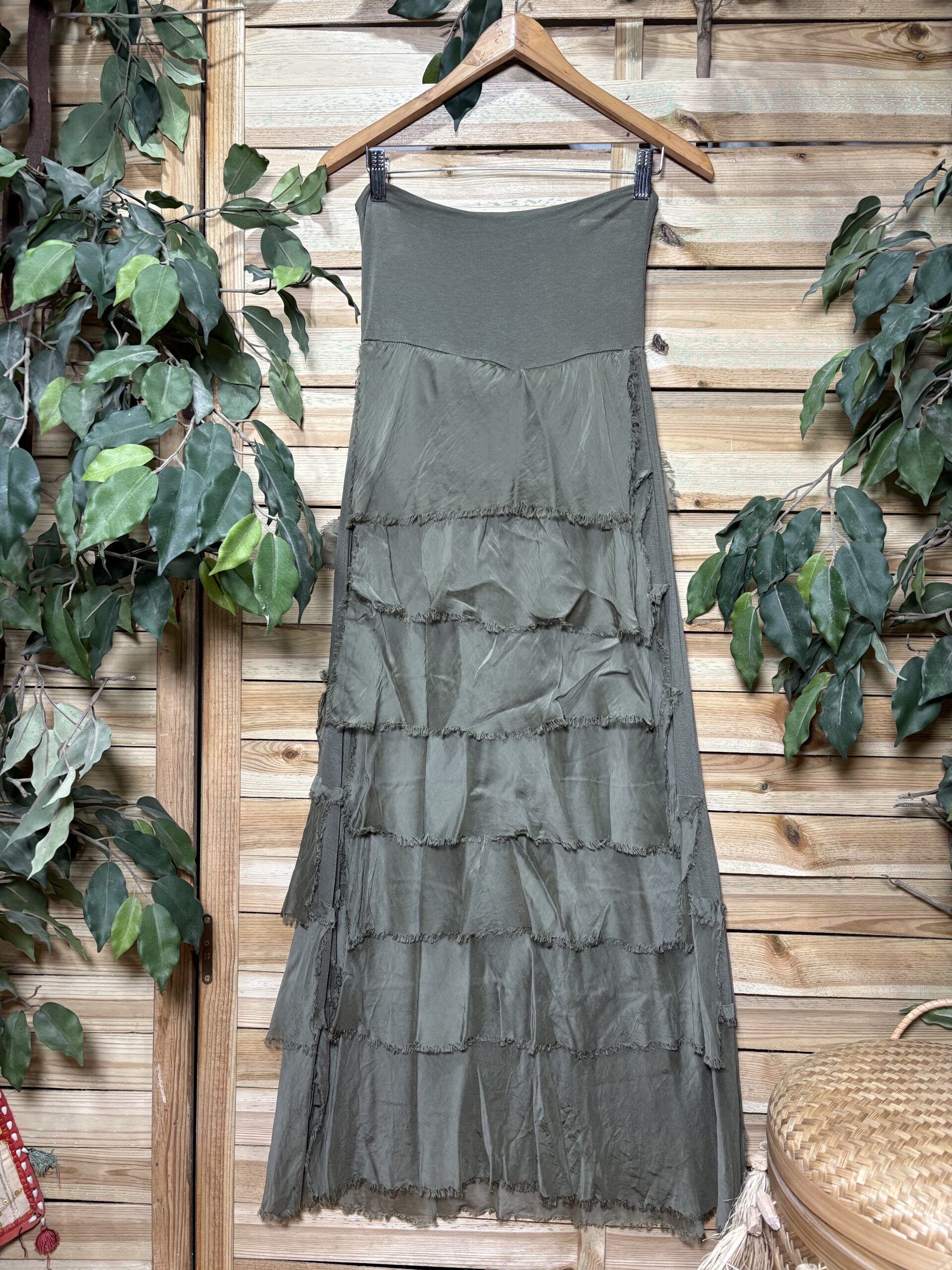 Preciosa falda con cascada de volantes de seda, prenda atemporal.