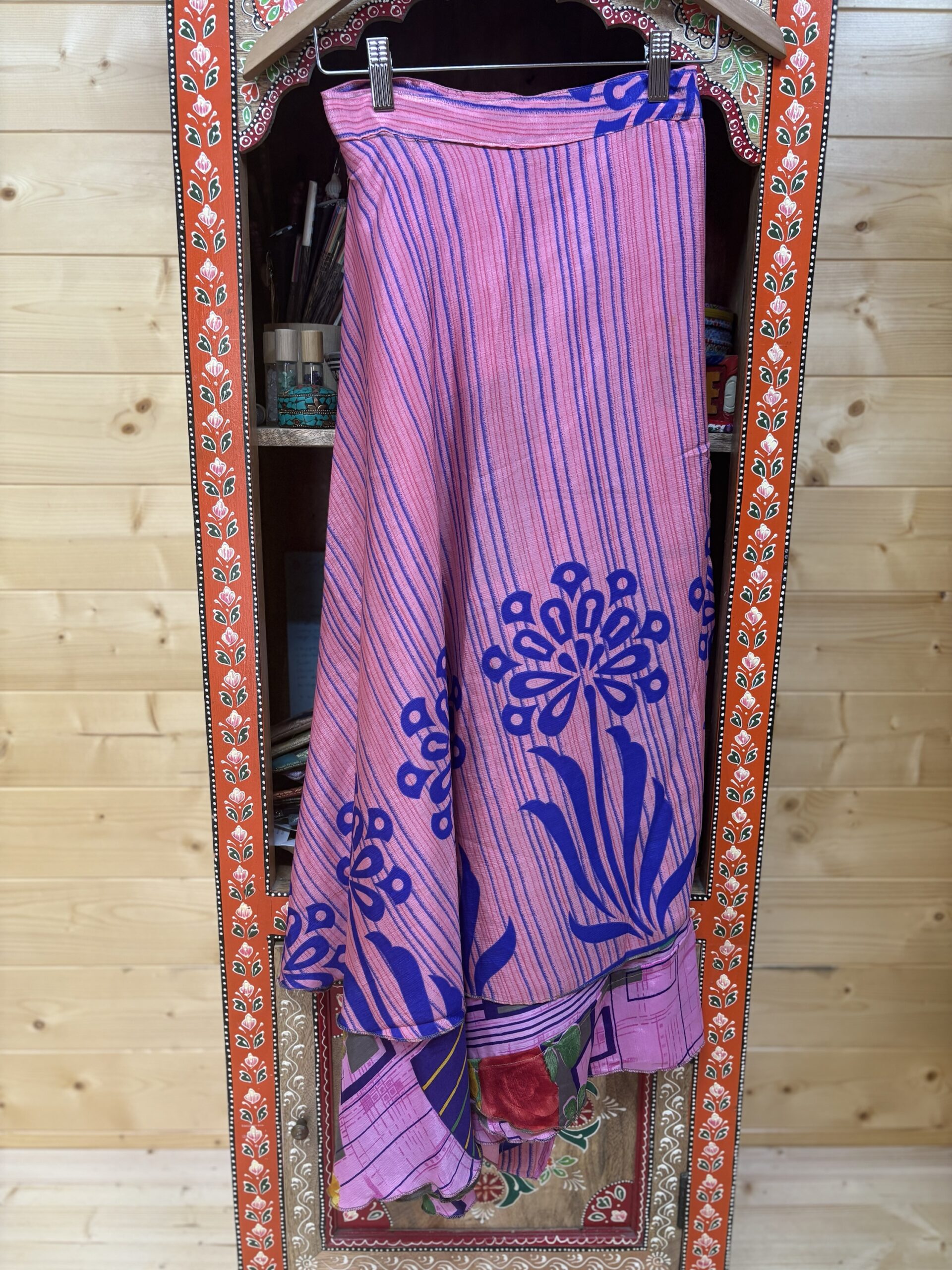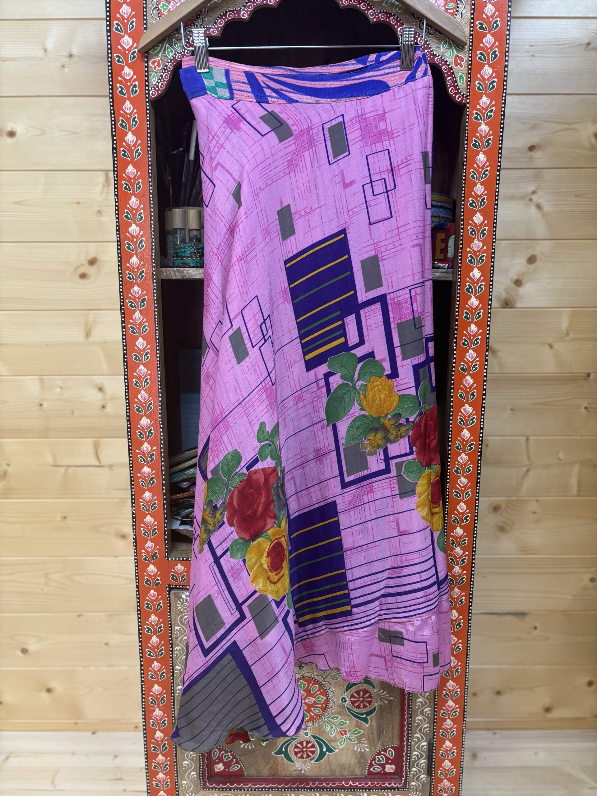 Falda pareo de seda reversible con 2 estampados diferentes.