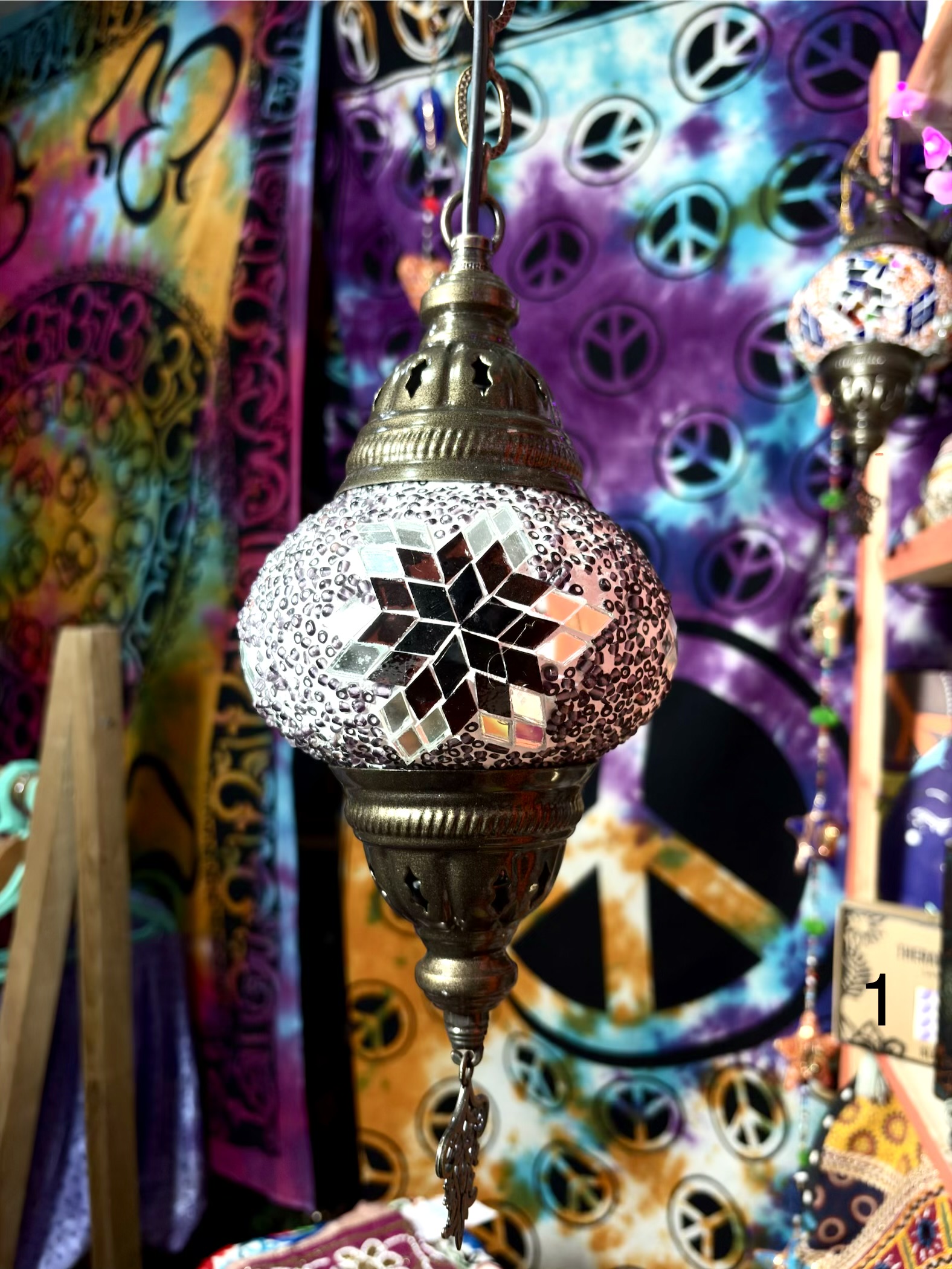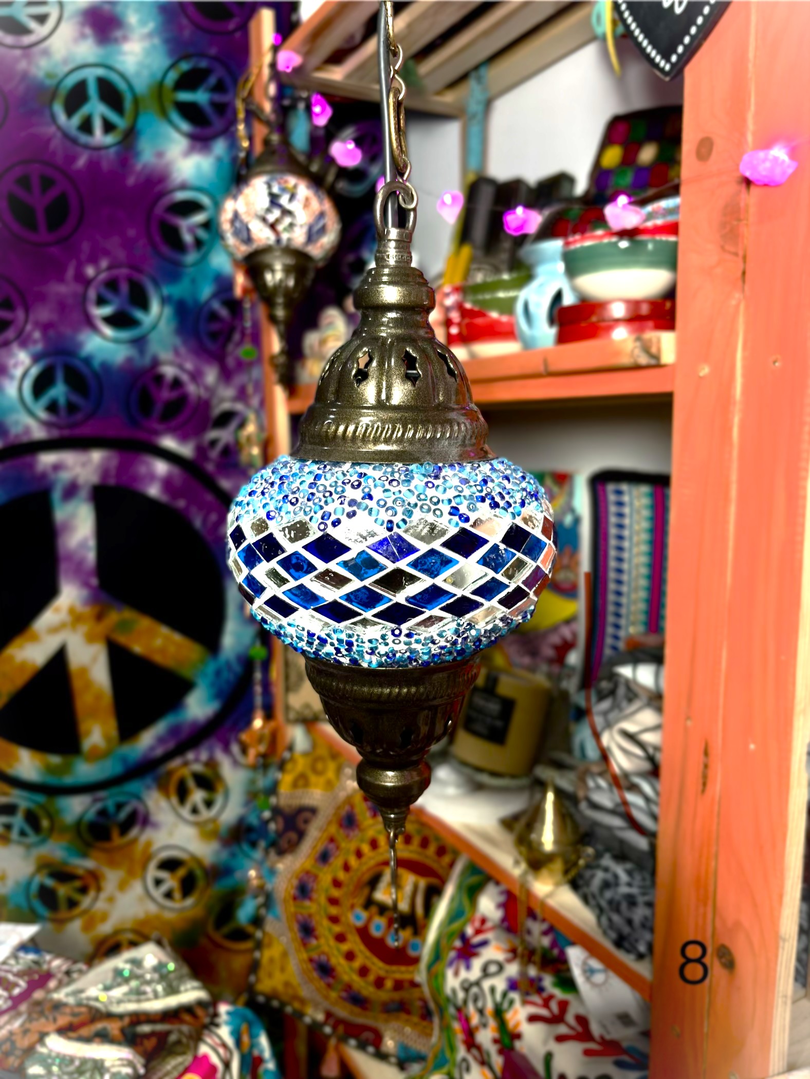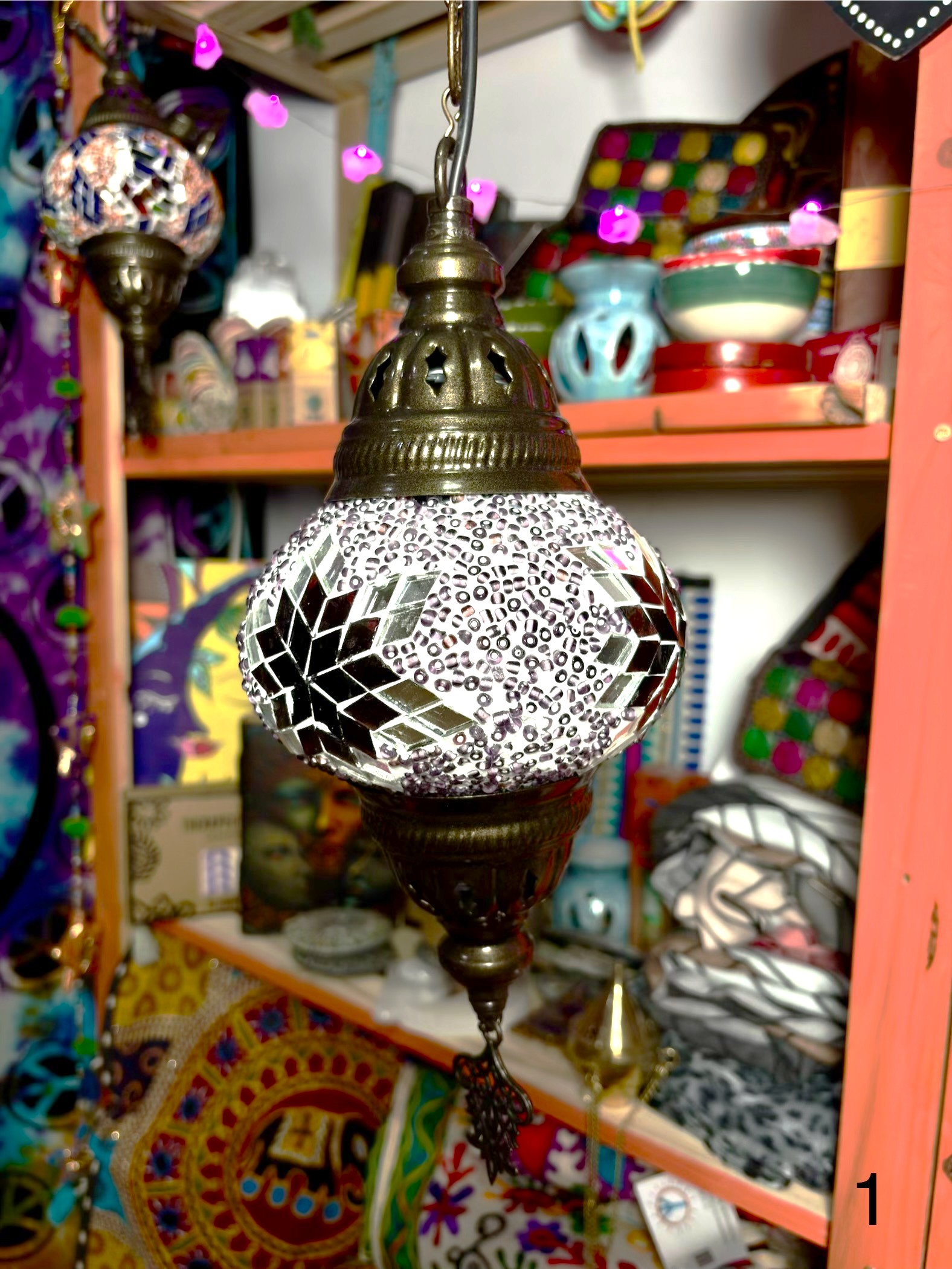 Lámpara Turca de techo, es una pieza decorativa artesanal típica de la tradición turca que combina iluminación funcional con arte y cultura. Estas lámparas están diseñadas para colgarse del techo y aportar un toque exótico y elegante al ambiente, difundiendo una luz cálida y sugerente.