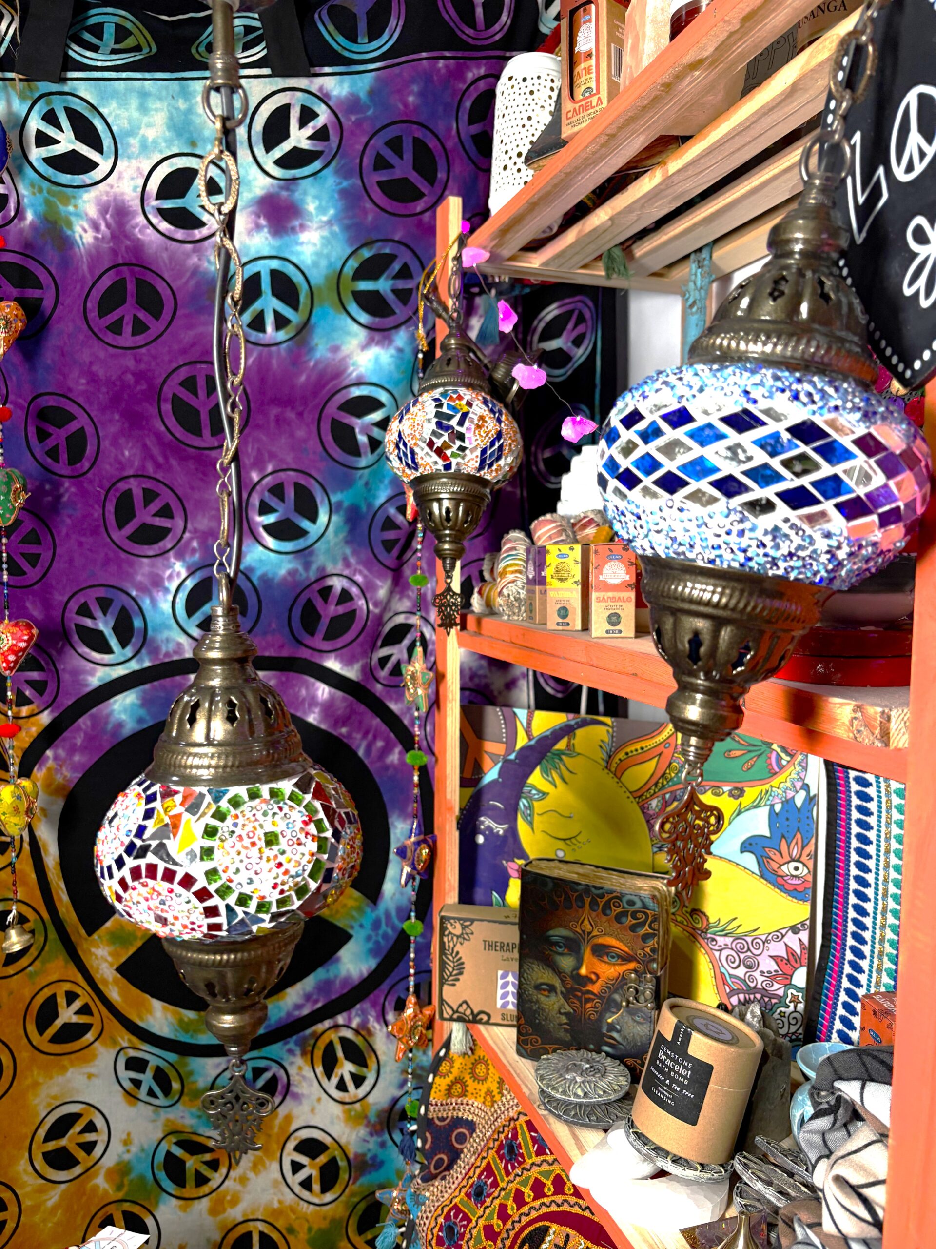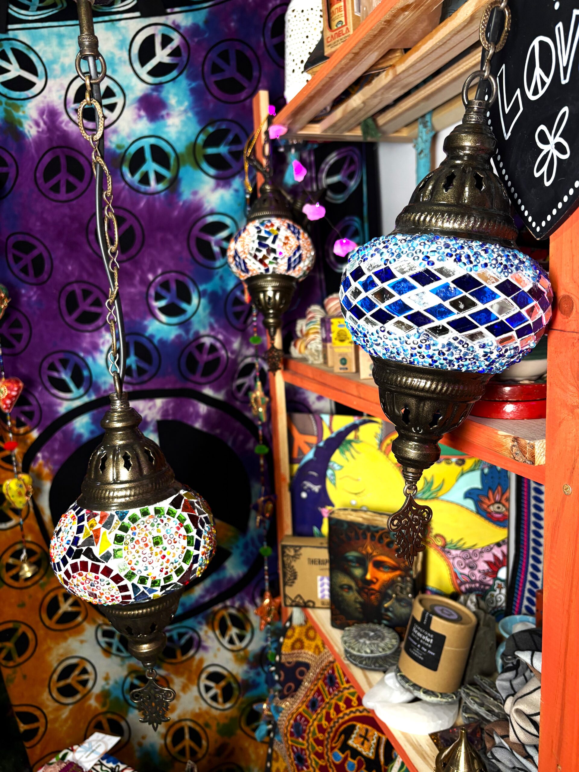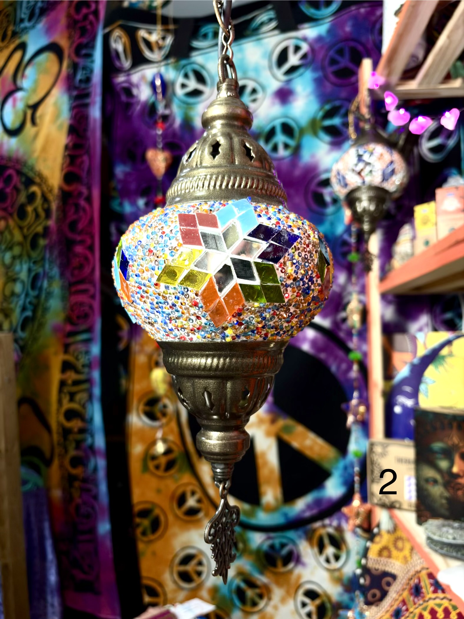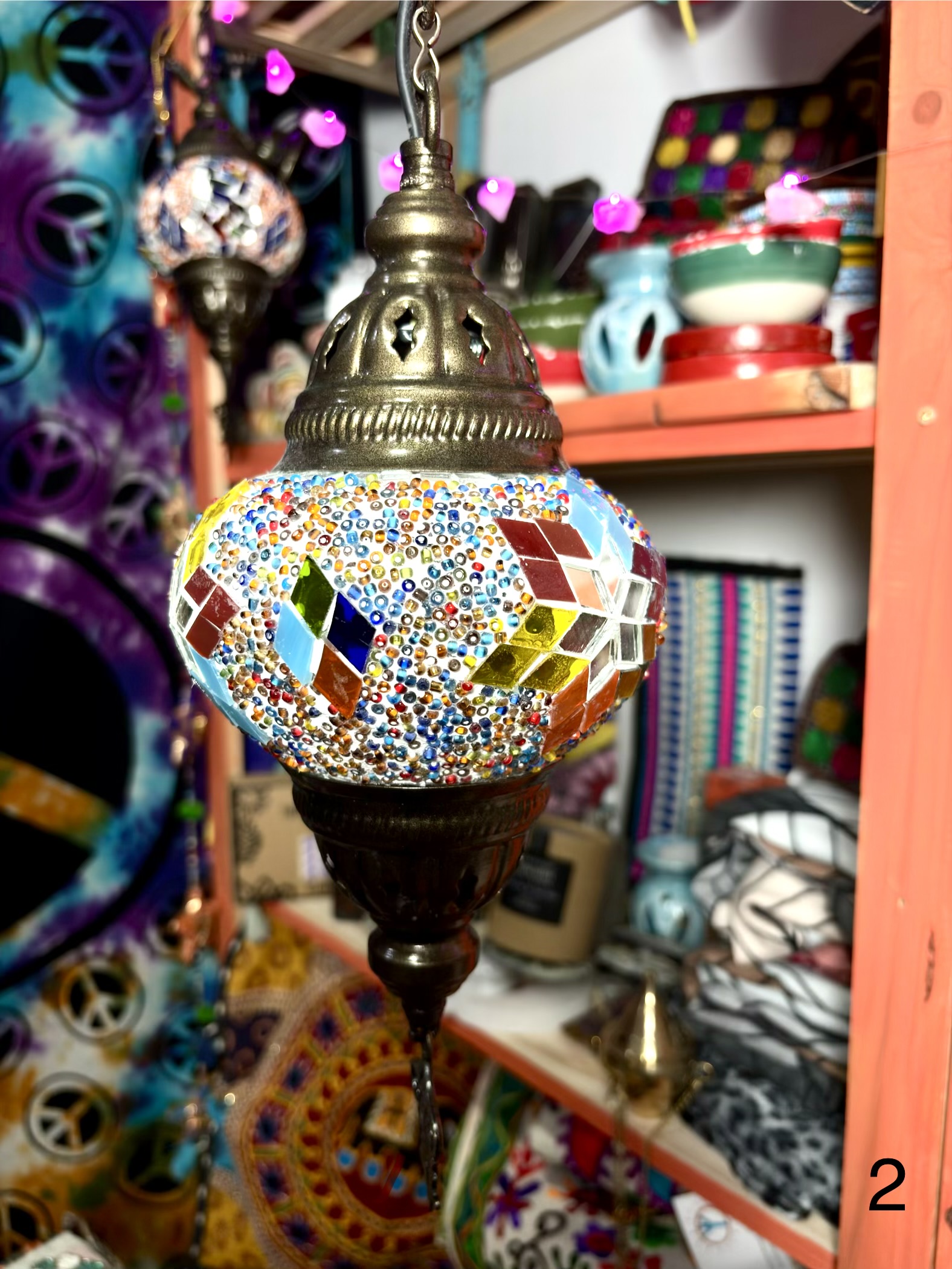 Lámpara Turca de techo, es una pieza decorativa artesanal típica de la tradición turca que combina iluminación funcional con arte y cultura. Estas lámparas están diseñadas para colgarse del techo y aportar un toque exótico y elegante al ambiente, difundiendo una luz cálida y sugerente.