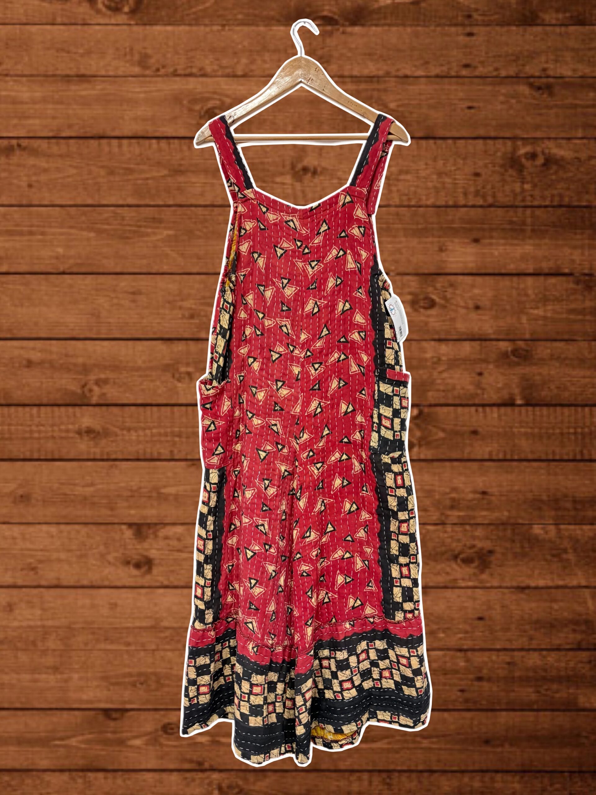 Peto con botones de madera en el escote. Bolsillos delanteros y botones en los tirantes con tres alturas para ajustar.